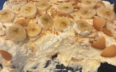 Banana Pudding Knock Chef’s recipe is made with condensed milk, cream cheese, pudding, fresh bananas and indigo potato chips! I think…