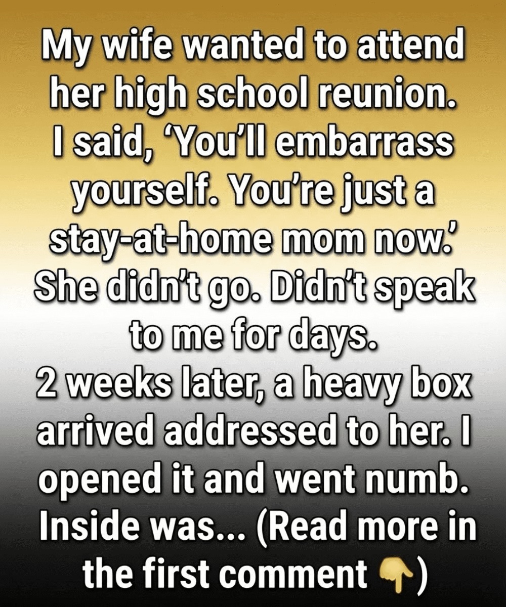 She stood in the kitchen doorway, the light catching the edge of the invitation in her hands. There was a hopeful softness in her smile—one I didn’t truly see until it disappeared. Without thinking, without cruelty but full of arrogance, I spoke.