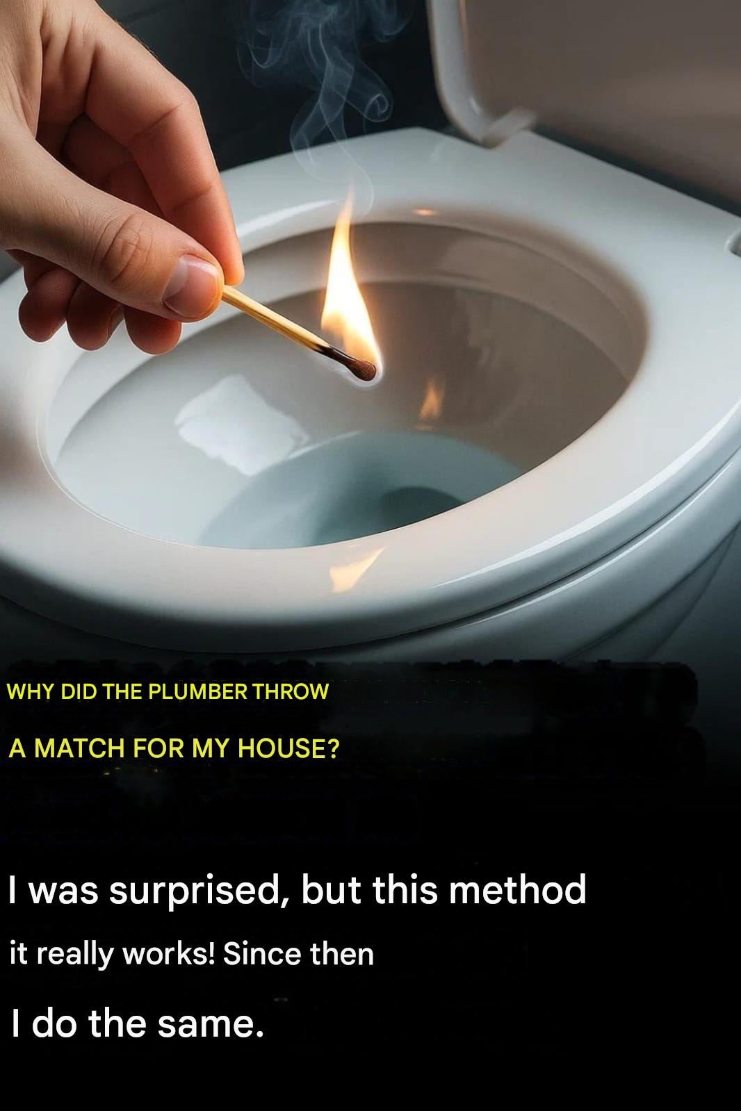 He lit a match and threw it into the toilet.